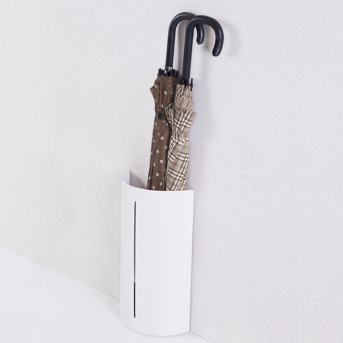 壁と一体化しているような円弧型の傘立てです。